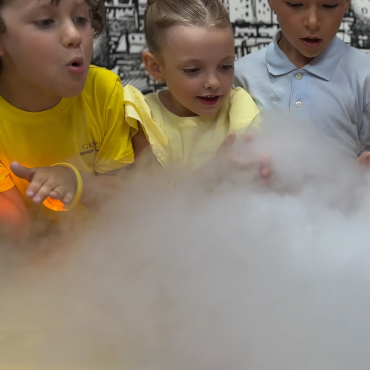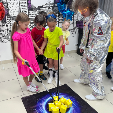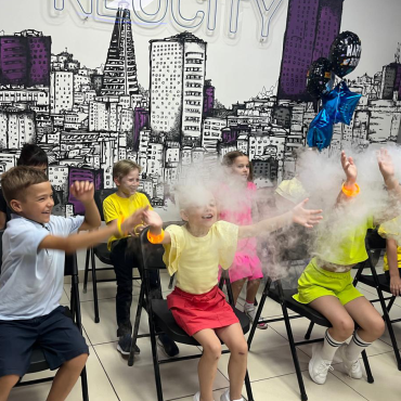 Выездной день рождения включает 1,5 часовую программу с 2-мя ведущими. Которая состоит из квеста с химическими опытами и экспериментами, мастер-класса и азотного шоу. Команда приезжает с полным комплектом звукового оборудования (микрофоны, колонка) и реквизита.
